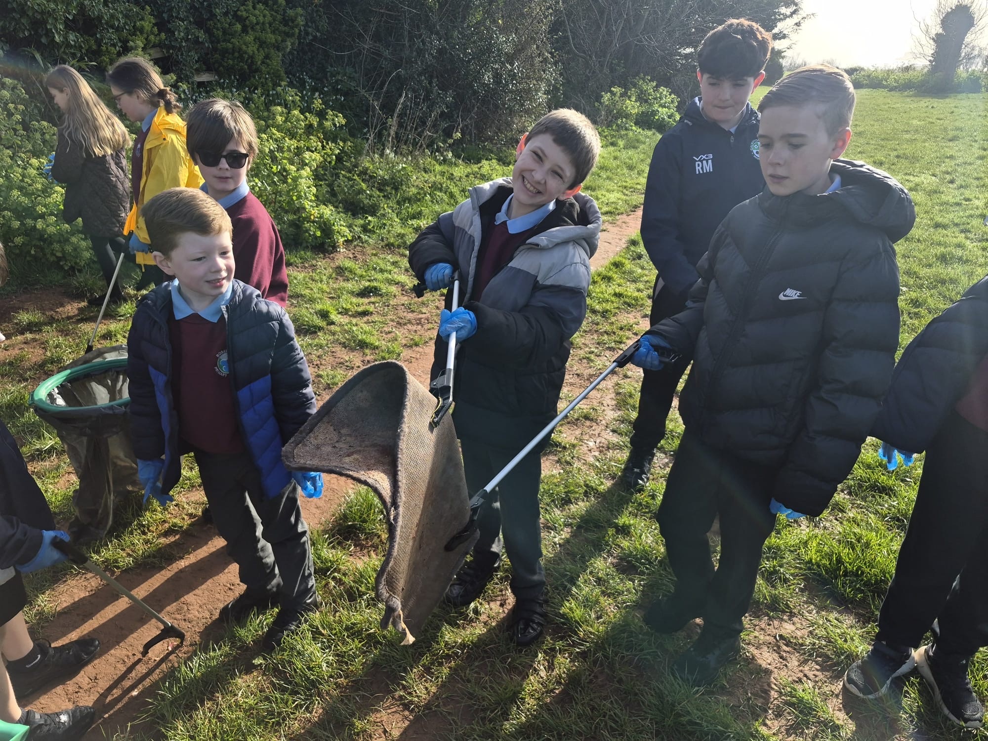 Armed with their new equipment, the School Council headed out to Roselands field and nearby local streets, tackling litter head-on and showing fantastic teamwork along the way. From bottles, cans and crisp packets to unexpected finds like plastic matting and even a doormat blown into a hedge after stormy weather. No piece of litter was too small (or too strange!) for this determined group.