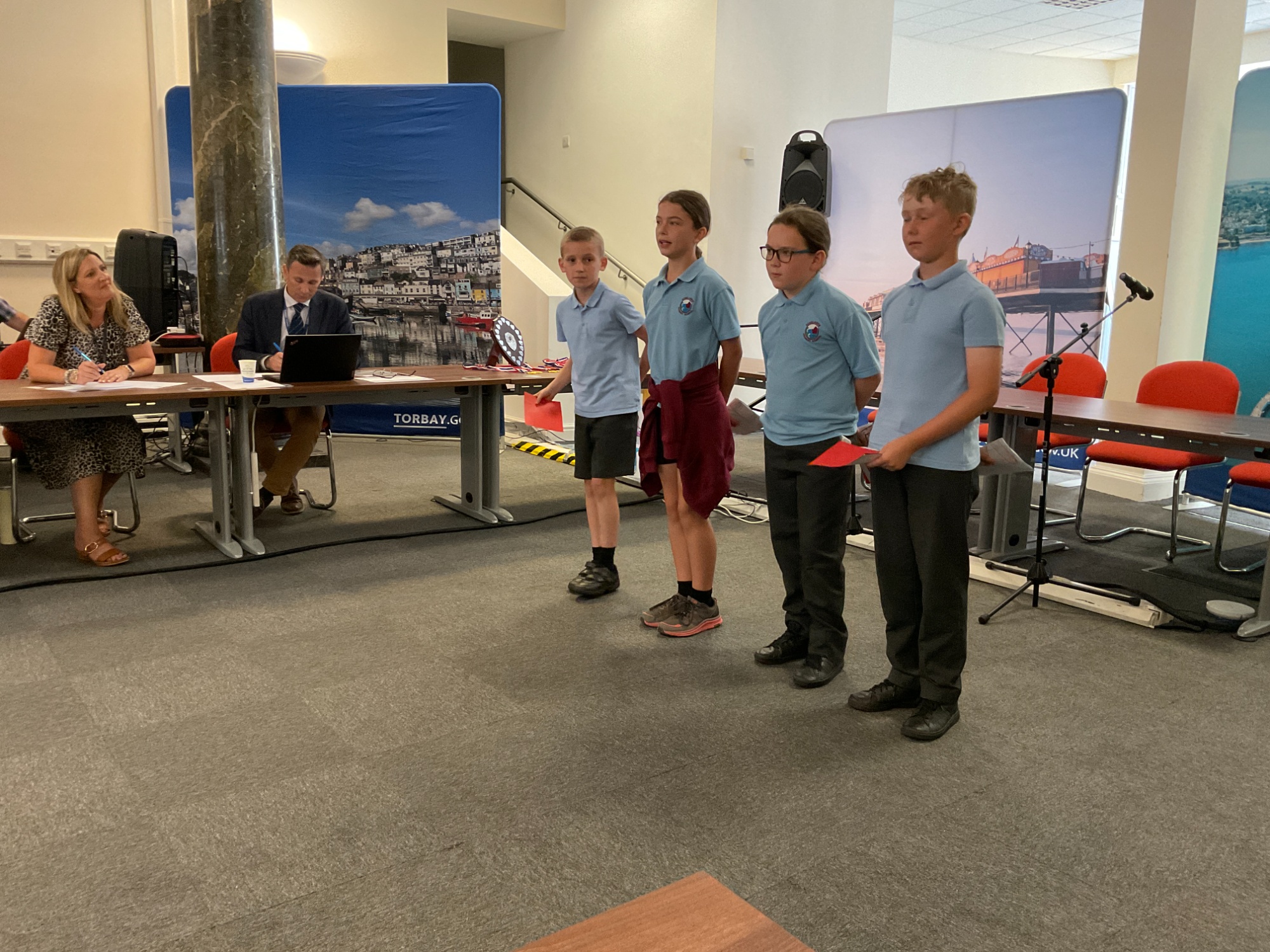 Following a vote in school, the winning group competed against schools from across Torbay to see who put their views and ideas across the best.