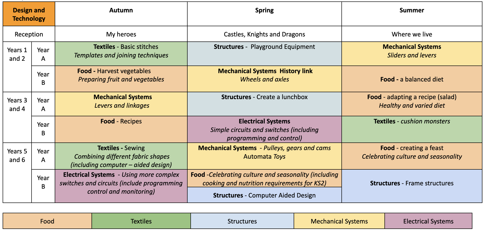 The D&T curriculum is taught through a two-year rolling programme and is taught in blocks throughout the year, ensuring that the children achieve depth in their learning.