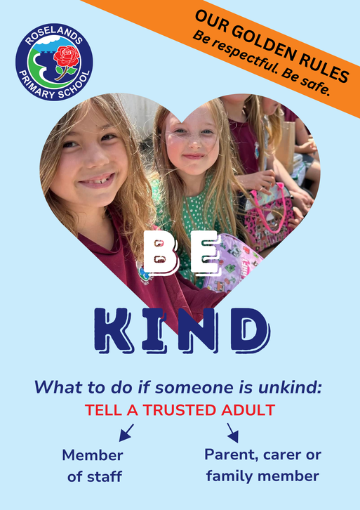 We create an atmosphere and environment where children, parents and staff feel able to tell the school about bullying if it arises and are confident it will be taken seriously and dealt with and put in place clear procedures for dealing with incidents of bullying.  To promote anti-bullying and ensure everyone feels safe at Roselands, each year we support the national anti-bullying week.