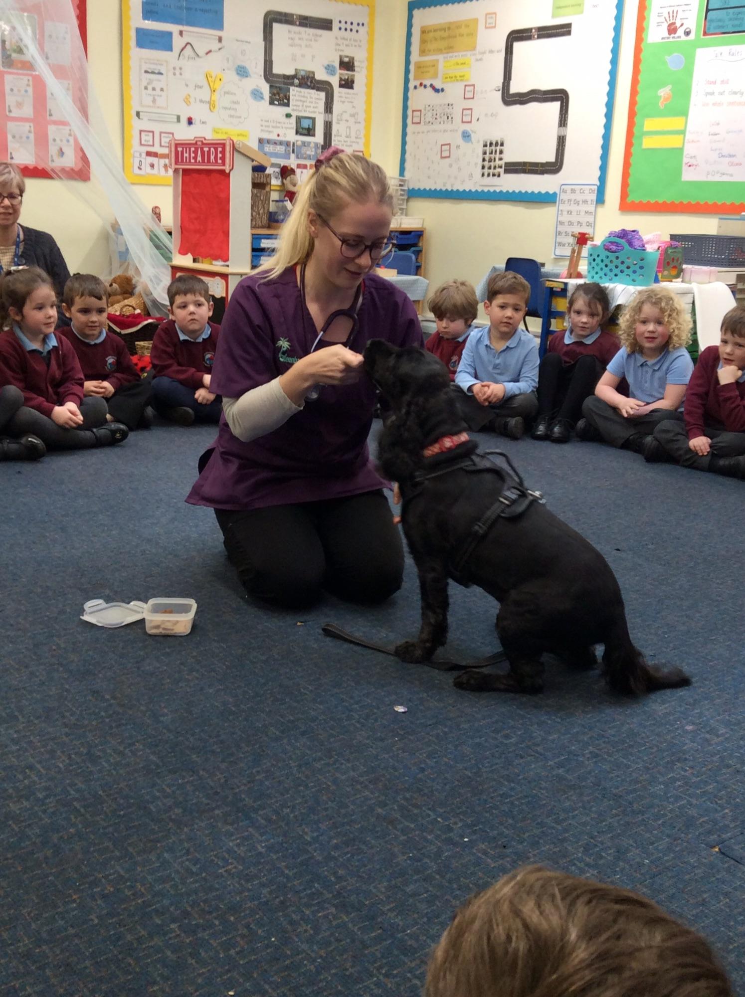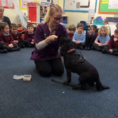 Pupils with Missy, a Pets As Therapy Dog