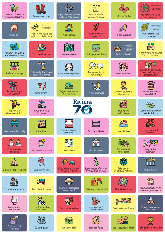 As a school and Trust, we have come up with 70 things we believe all children should and will experience whilst at our school. This is called Riviera 70.