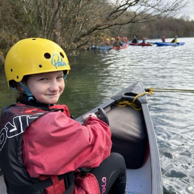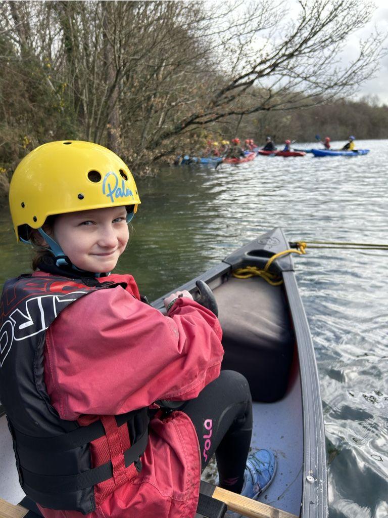 Pupils in wetsuits and buoyancy aids getting ready to paddle