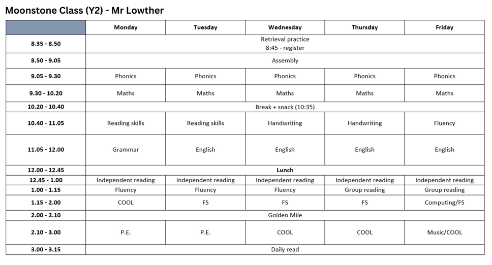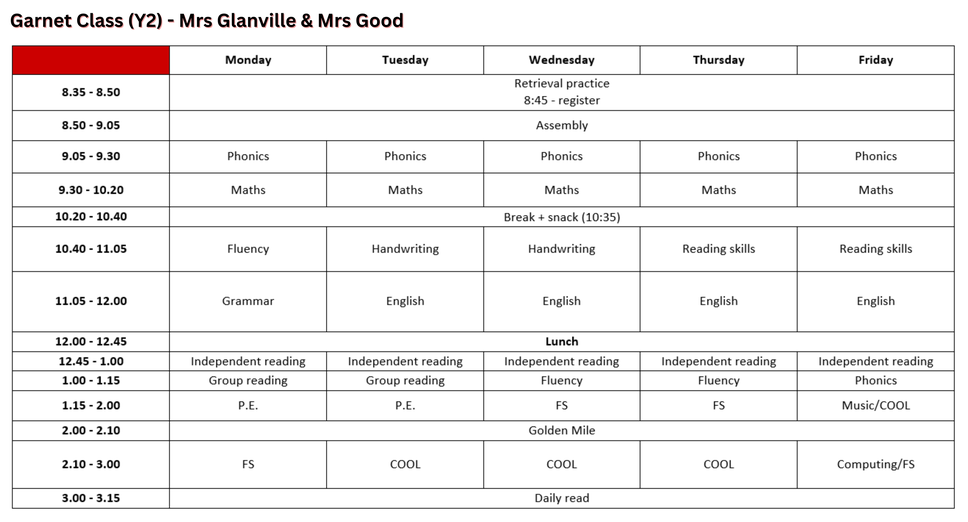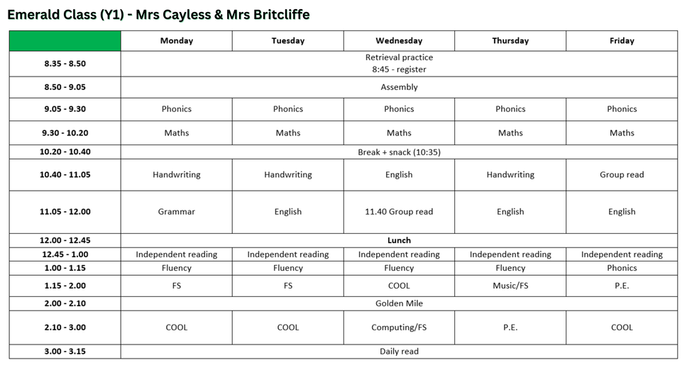 On this page you will find the timetables for each of the classes in Year 1 and 2.